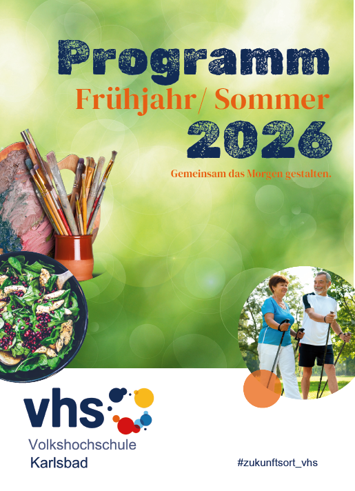 Neuigkeiten aus der Vhs KarlsbadAktuelle Programm Flyer finden Sie in der Vhs und den Rathäusern, gerne auch als Download:[PDF] Vhs Bröhschüre 2026 (ca. 150 MB)Unser aktuelles Dozent*innen VerzeichnisDozentenverzeichnis